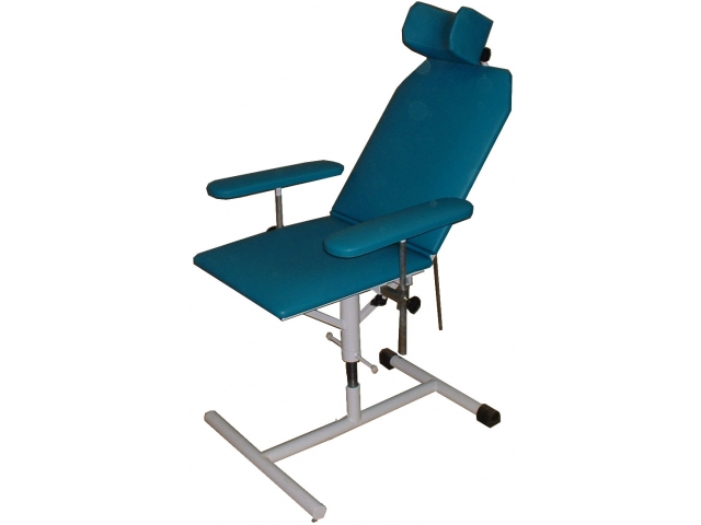Каркас кресла изготовлен из металлического профиля и окрашен белой порошковой эмалью. Ложе кресла имеет бесшовную оббивку медицинским кожезаменителем. Цвет оббивки выбирается по желанию заказчика. Каркас кресла установлен на вращающийся винт, позволяющий регулировать высоту сиденья над полом. К спинке кресла крепится вращающийся подголовник, а к сиденью с боков крепятся подлокотники. Конструкция кресла не имеет выступающих и острых частей, что обеспечивает предупреждение травм при эксплуатации и легкий доступ медицинского персонала к пациенту.