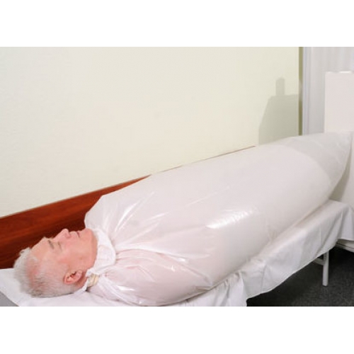Мешки полиэтиленовые для сухих углекислых ванн 2000х900мм. Применяются в качестве одноразового расходного материала для пациента (1мешок на 1 процедуру) при приеме процедур с углекислым газом, который закачивается внутрь мешка. Методика применения заключается в следующем. Пациент помещается в полиэтиленовый мешок, одна сторона которого запаяна. Через открытую часть мешка при помощи специального пистолета (как например в DGB-CO2, фирмы DIMAP Чехия) подается углекислый газ. После необходимого наполнения мешка при помощи специальной ленты которая оборачивается вокруг плеч или вокруг шеи мешок плотно стягивается и фиксируется лентой для того, чтобы углекислый газ не выходил наружу. После приема процедуры по времени пациент высвобождается из полиэтиленового мешка.