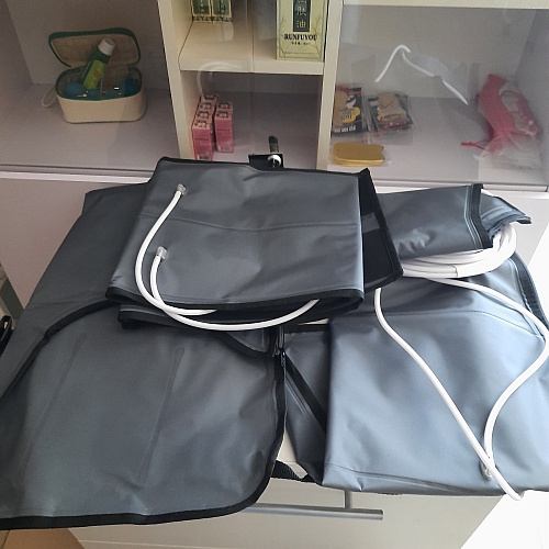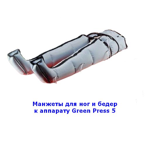 Манжеты для ног и бедер применяются для устранения целлюлита и профилактики при отеках ног и варикозных венах, устраняют лимфатические отеки разного происхождения. Применение процедур прессотерапии способствует общему оздоровлению организма благодаря ликвидации застоя лимфы